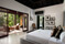At the heart of Villa Hana is a huge fan-cooled and split level living area spreading out under a vaulted pavilion roof and opening onto the pool terrace. Curvaceous wicker sofas with over-sized cushions cluster around a coffee table while statuesque artefacts line benches set below enormous paintings.
